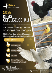 Am 24. und 25. Januar 2026 findet in Dudweiler-Herrensohr die Kreisschau der Rassegeflügelzüchter des Kreises Saarbrücken-Land statt.