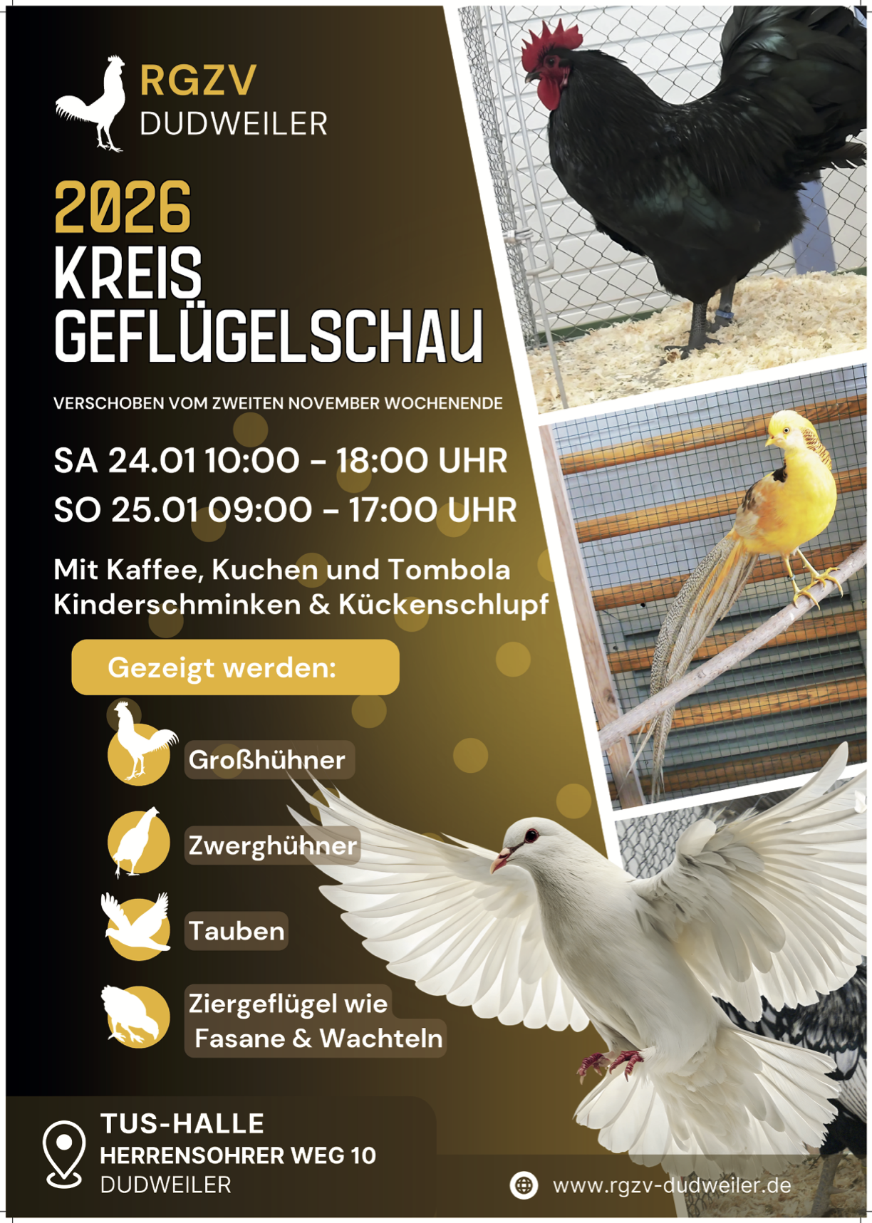 Wir sind stolz darauf, auch in diesem Jahr eine vielfältige Auswahl an Großhühnern, Zwerghühnern, Tauben und Ziergeflügel präsentieren zu dürfen. Diese Veranstaltung hat eine ganz besondere Bedeutung, da wir die Ehre haben, eine Kreis-Schau ausrichten zu dürfen.